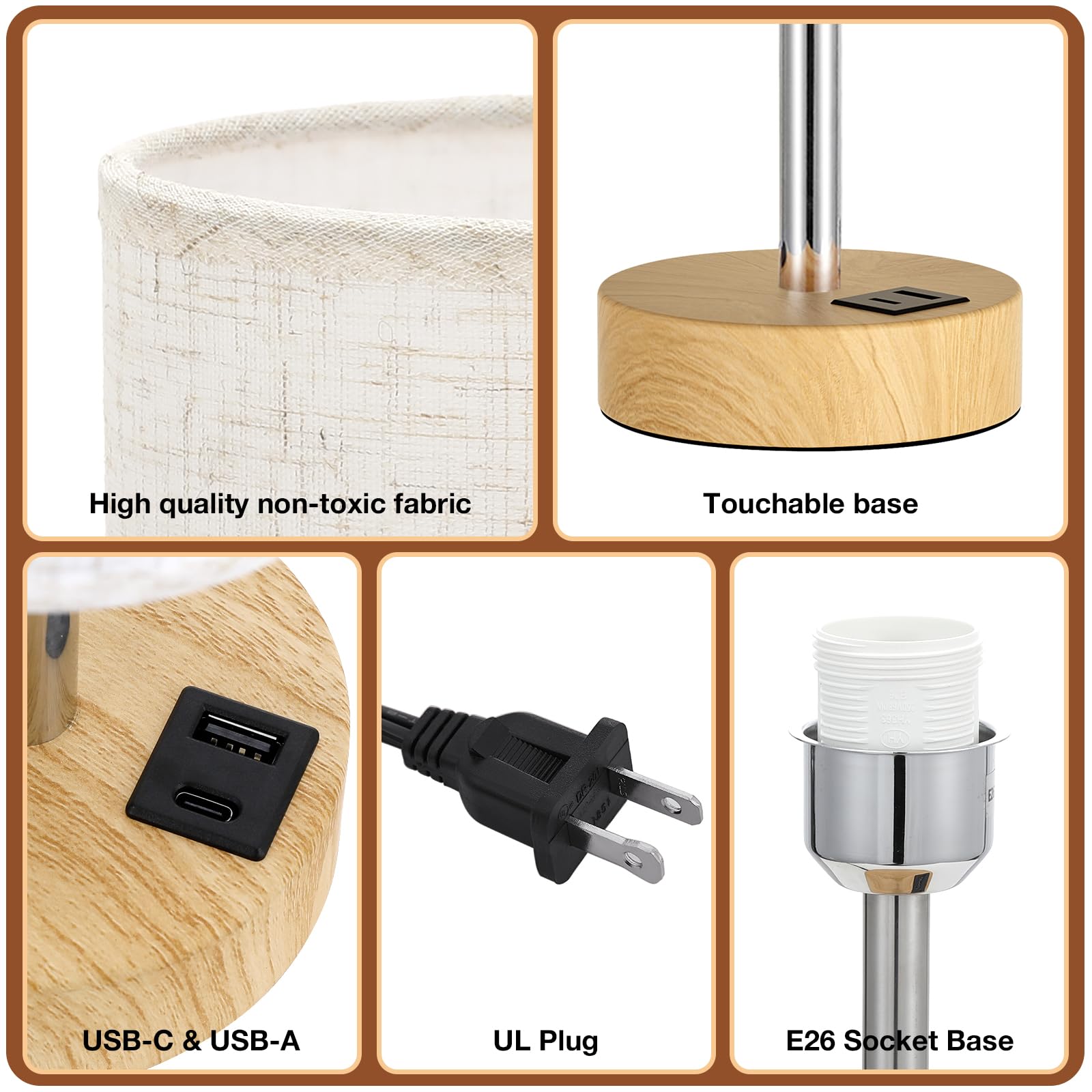 3-Way Dimmable Touch Control Wood Table Lamp with USB Charging Station - 6W LED Bulb Included
