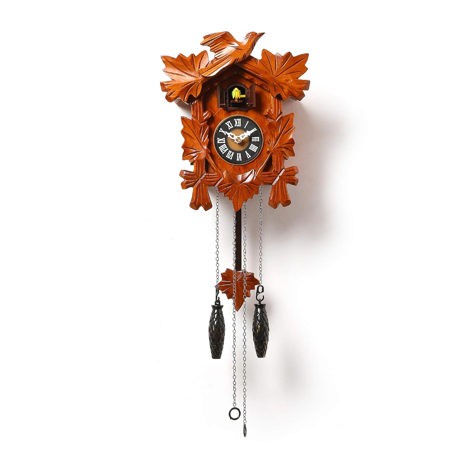 Cuckoo Wall Clock – Roman Dial, Step Movement, Brown Wooden Case, Auto Night Shut-Off with Sensor, Sound Control, On/Off Switch (40 x 25 x 15 cm, Height 9.4 Inches