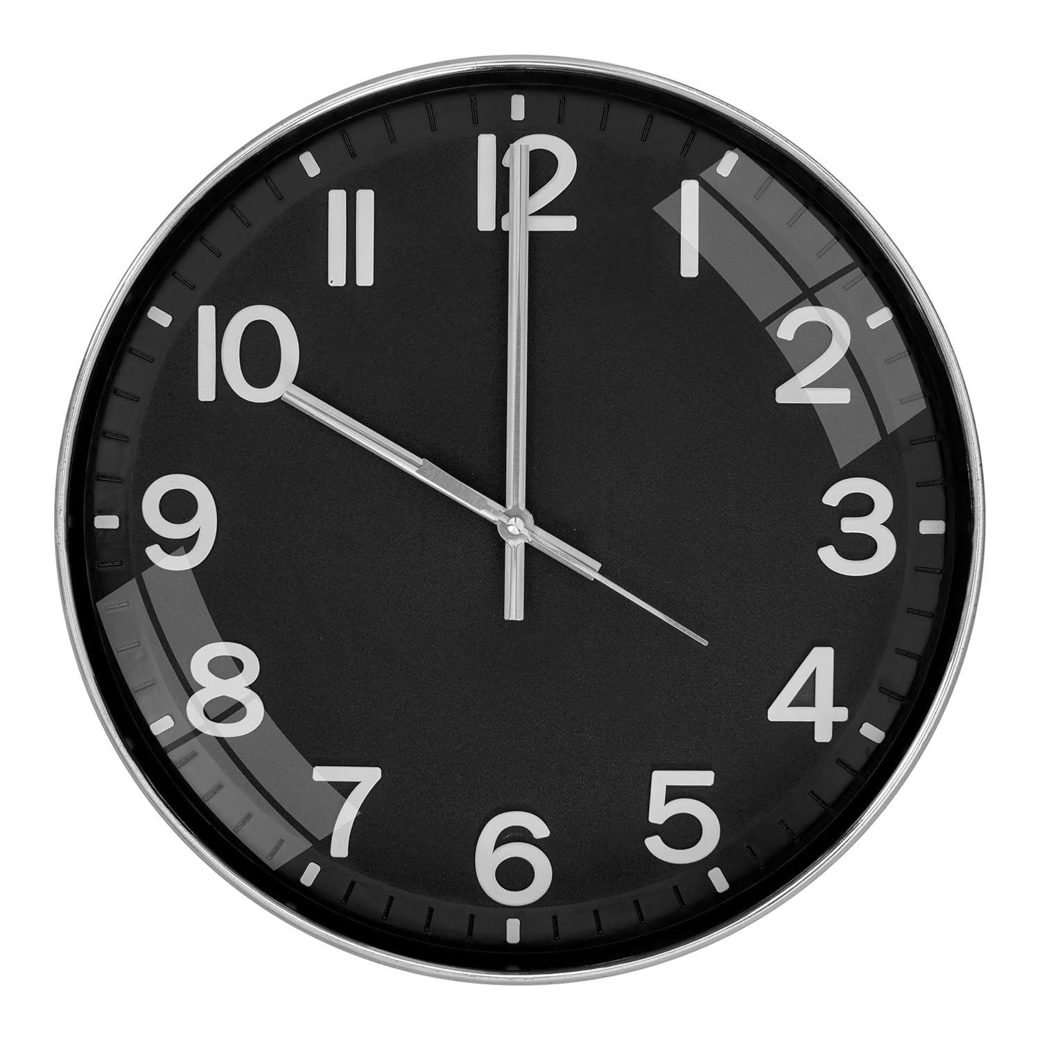 Digital Wall Clock 12" Silent Quartz Decorative Non-Ticking Classic Round Clock, Battery Operated, Easy to Read for Room, Home, Kitchen, Bedroom, Office, or School (Black Silver)