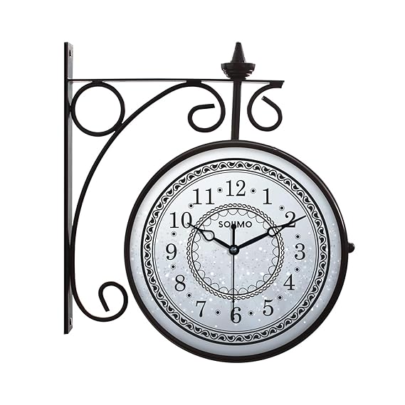 Double Sided Vintage Station Wall Clock, One Side Roman and Other Side Numeral Dial (8 Inches, Black) Metal, Analog