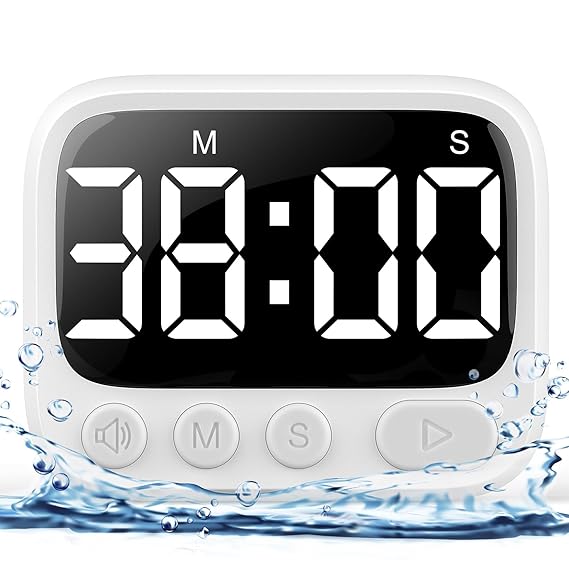 Waterproof Bathroom Timer Clock Toilet Timer Digital Kitchen Timer w/Suction Cup for Wall Mount, Desk Timer w/Stand for Desktop, Countdown/Stopwatch/Mute/High/Low Volume, White
