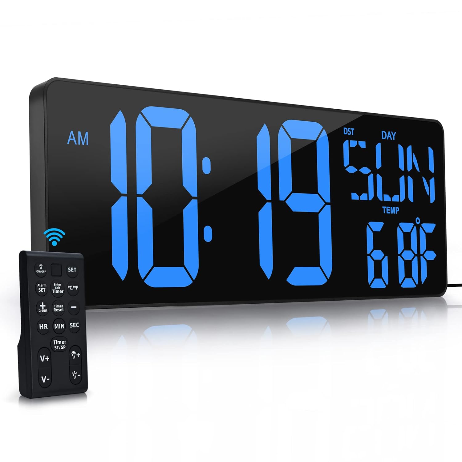 Multiple Functions & Wide Usage – Operates via mode button or remote control. Includes snooze, 12/24-hour format, DST, and temperature display in °C or °F. Perfect for gyms, shops, living rooms, garages, offices, classrooms, and more.