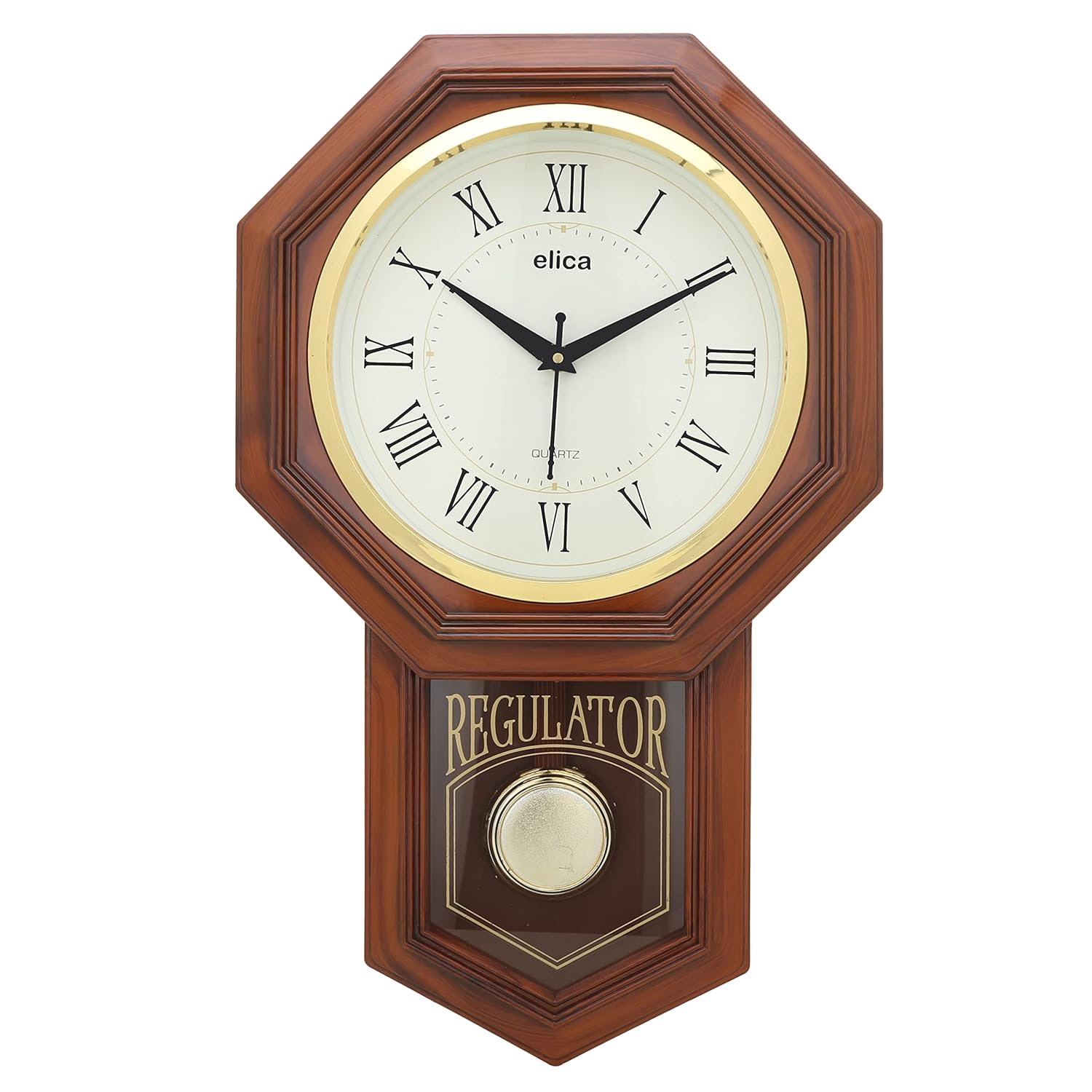 Regulator Vintage Retro Design Pendulum Wall Clock for Home, Office (52 x 32 cm) (Roman Brown)