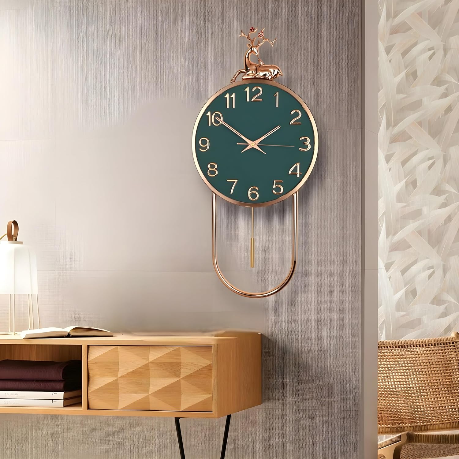 Silent Reindeer Pendulum Wall Clock – Large Decorative Wall Clock for Living Room, Bedroom, Home Décor, Gift (36 × 77 cm, Green)