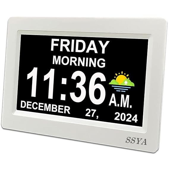 Digital Calendar Alarm Day Clock - 12 Alarm Options, Level 5 Auto Dimmable, Dementia Clocks for Vision Impaired, Elderly, Memory Loss Clock with Non-Abbreviated Clock with Date and Day (7 inch)