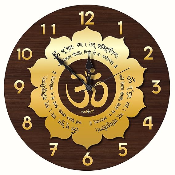Wood Om Wall Clock, For Living Room, Bedroom, Kitchen, Dining Room, Office, Home Decor, 38 Cm, Gold, Brown